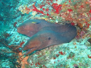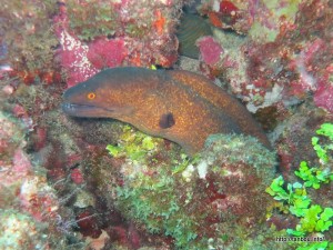 ドクウツボ アリ環礁(モルディブ) アリ環礁(モルディブ) 大型のウツボで歯が鋭いです。エラの周りが黒くなっていることが特徴です。シガテラ毒をもつことが名前の由来です。 分類 ウナギ目ウツボ亜目ウツボ科ウツボ亜科ウツボ属 学名 Gymnothorax javanicus 英名 Giant moray