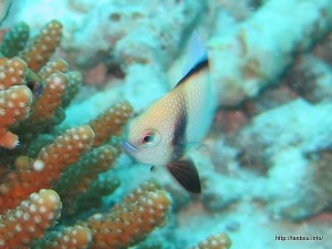 インディアンダスキラス アリ環礁(モルディブ) アリ環礁(モルディブ) ヒトスジリュウキュウスズメダイとでも言うべきインド洋版のミスジリュウキュウスズメダイ。横帯は1本しかなく、尾ビレが白いのが特徴です。 分類 スズキ目ベラ亜目スズメダイ科スズメダイ亜科ミスジリュウキュウスズメダイ属 学名 Dascyllus carneus 英名 Cloudy dascyllus