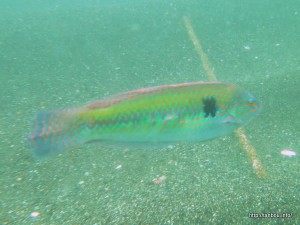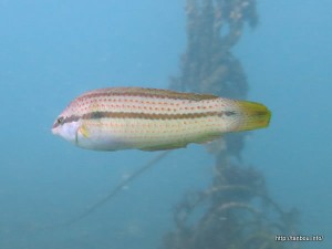 キュウセン 雄相, 神奈川県早川 雌相, 神奈川県早川 雌相, 静岡県八幡野 黒い2本の縦帯が走ることが特徴です。雄相には、前方に蛍光色で縁取られた黒斑があります。 以前はHalichoeres属に分類されていましたが、Parajulis属として独立しました。現在、1属1種です。 分類 スズキ目ベラ亜目ベラ科カンムリベラ亜科キュウセン属 学名 Parajulis poecilepterus 英名